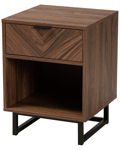 Design Details: Fill Out The Potential Of Any Interior With The Easy Yet Stylish Convenience Of The Lovely Sadia End Table. This Modern Piece Consists Of An Openwork Metal Base Fitted With A Sturdy Wood Frame. The Drawer Offers Secure Storage Space For Common Essentials, While The Open Shelf Serves As A Convenient Display For Larger Items. The Sadia Requires Assembly And Features A Minimalist Metal Drawer Handle That Draws Attention To The Energetic Wood Grain Of The Frame. A Fantastic Solution For Your Organizational Needs, The Sadia End Table Blends Well With Any Layout. Color/Finish: Walnut Brown, Black Measurements: 15.7In X 15.7In X 21.3In Overall: 15.7In X 15.7In X 21.3In Drawer: 14.3In X 12.4In X 5.4In Open Shelf: 14.4In X 15In X 9.1In Clearance (From Floor Up): 4.7In 1 Drawer (S) 1 Shelf/Shelves Powder-Coated Metal, Particle Board Wipe Clean Assembly Required Imported