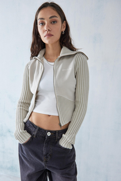 BDG Thea Ribbed Ecru Track Top In Silver