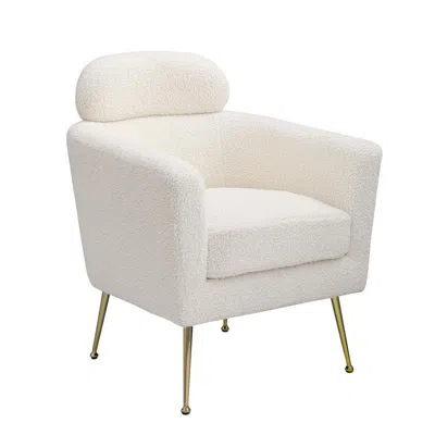 BEST QUALITY FURNITURE Accent Chair With White Vegan (faux) Fur And Gold Chrome Legs