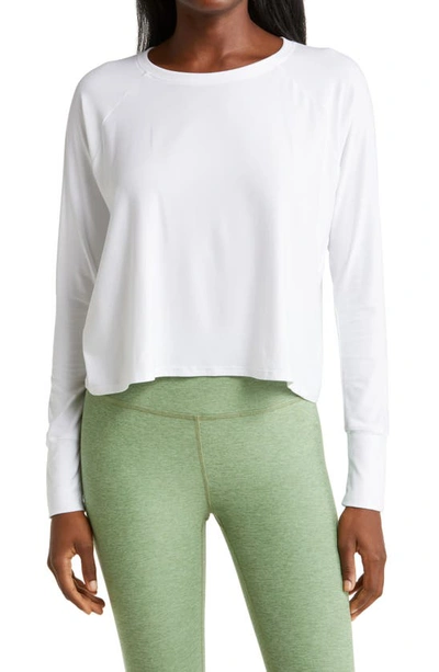 Beyond Yoga Featherweight Morning Light Pullover Top in Cloud White - White. Size XS (also in L, M, S). 94% poly 6% spandex. Made in USA. Machine wash. Lightweight fabric. Back screen print logo. BEYF-WS39. LWSD7557. About the designer: A leader in buttery soft athleisure wear, Beyond Yoga accompanies the modern woman everywhere life takes her, from barre class to casual days. Founded on the idea that authenticity and ease are key to confidence, Beyond Yoga celebrates all body types with inclusive designs and sizes that fit as comfortably as a second skin. With fine fabrics and flattering cuts, slipping into Beyond Yoga is a sheer act of luxury. Ultimately, the Los Angeles-based brand seeks to inspire women to feel beautiful inside and out: because when we feel good, we go beyond the ordinary.