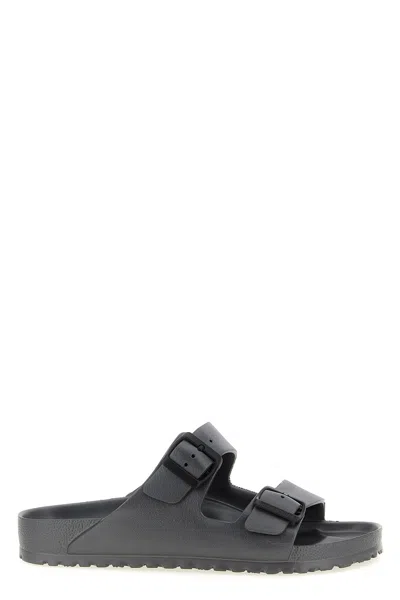 The BIRKENSTOCK Arizona is a genuine classic. Modelled on the cork sandal, this version is made from EVA. The high-quality, odour-neutral EVA has been tested for harmful substances and combines numerous positive attributes: it is very light, highly elastic, water-resistant, and skin-friendly and offers the comfort you have come to expect from BIRKENSTOCK. This version features our popular Big Buckle made from a stainless synthetic material and makes an impression with its durability and minimalist design. Anatomically shaped BIRKENSTOCK footbed made from EVA Upper/footbed lining/sole: a single piece of EVA Details: water-resistant, washable, ultra-lightweight Made in Germany Upper: EVA Insole: EVA Footbed material: EVA Outsole: EVA
