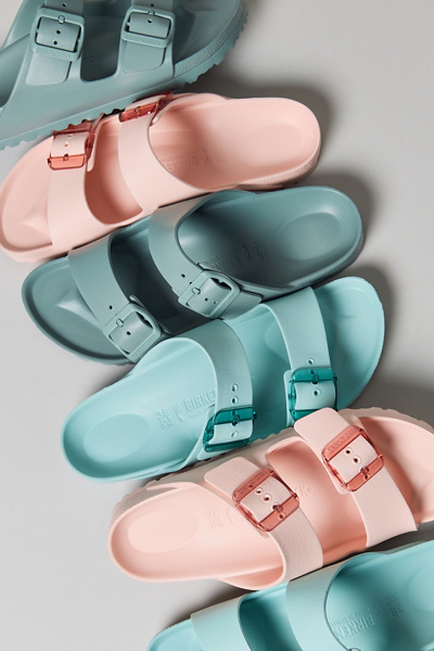 The Birkenstock Arizona is the classic summer sandal, now available in super lightweight and flexible EVA. The high-quality, odor-neutral material is also waterproof, washable and extremely easy to care for. Complete with an anatomically-shaped footbed with a deep heel, arch support and toe grip. Features Our fave Birkenstock Arizonas in soft EVA Lightweight & waterproof Birkenstock shoes Slip-on Birkenstock sandals Content + Care EVA Wipe clean Imported Size + Fit Birkenstock narrow A-B width Fits like a medium B width Birkenstock Women's Arizona EVA Sandal in Pure Sage, Women's at Urban Outfitters