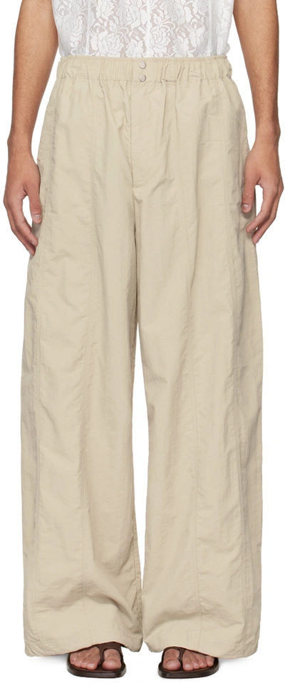 Nylon taffeta trousers. · Paneled construction · Elasticized waistband · Four-pocket styling · Zip-fly · Concealed bungee-style drawstring at cuffs Supplier color: Stone