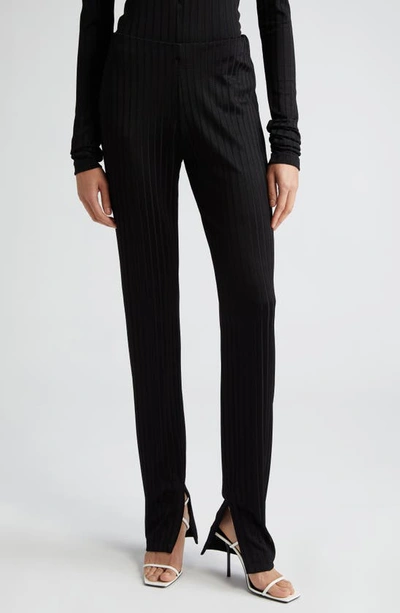 Split Hem Rib Pants In Black