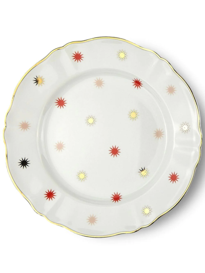 4 piece Volta dinner plate set from Bitossi Home featuring white/multicolour, porcelain, star print, asymmetric edge, dishwasher safe and set of four.