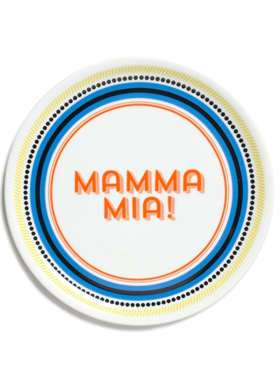6 piece Mamma Mia pizza plate set from Bitossi Home featuring white/multicolour, porcelain, slogan print, geometric print and dishwasher safe.