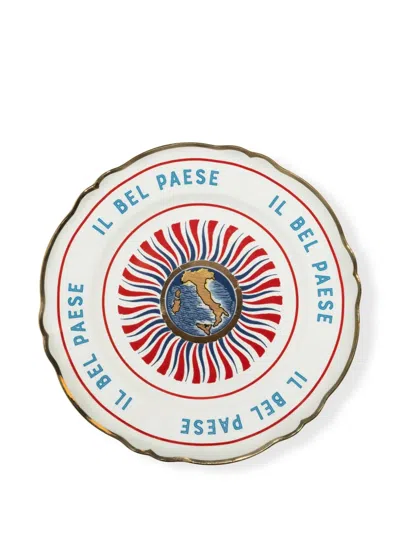 Weiß Wellensaum zentrales Emblem lebendiges Sunburst-Design Goldrand Il Bel Paese-Print Unter Größe & Passform erfahren Sie mehr über die Maße dieses Artikels.