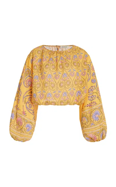 BOTEH Darjeeling Cropped Linen Top In Yellow