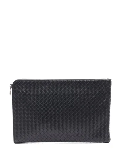 Pre-owned 2000s Intrecciato Leather Clutch Bag In Black
