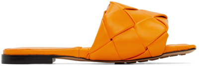 BOTTEGA VENETA Orange Square Toe Leather Flat Sandals For Women