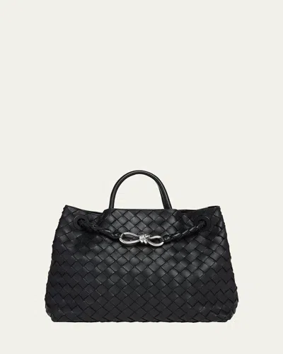 Bottega Veneta fits its classic Andiamo top-handle bag with a functional new strap. Retaining the original hard-shell structure, this iteration sees the sought-after design become even more wearable without sacrificing any of the bag's beloved signatures, like the twisted knot-shaped hardware and iconic Intrecciato-woven leather. Snap your essentials up using the magnetic frame closure and sling it over your shoulder at a moment's notice.Bottega Veneta leather top handle bag100% lamb leatherMagnetic closureStructured shape, top handle, braided strap, knotted clasp at front, one main compartment, internal zip pocket, gold-toned hardwareWidth 31cm, length 25cm, depth 12cm, handle drop length 7cm, strap drop length 24cmSpecialist leather cleanComes with a dust bag