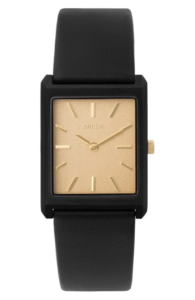 BREDA Virgil Leather Band Watch In Black In Black/ Black/ Gold