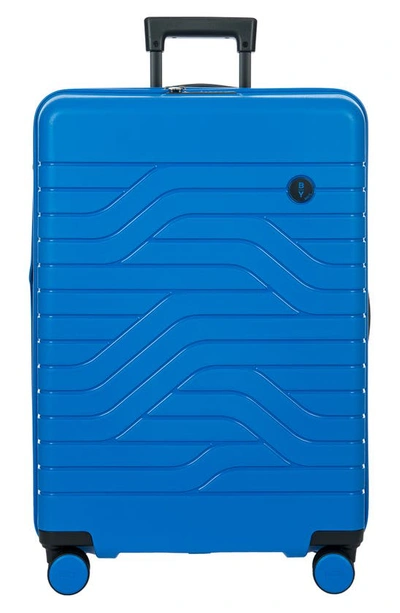 The 28" spinner ULISSE B/Y collection from Bric's. This stylish yet urban looking trolley is made out of Polypropylene. This is a very strong, durable and light weight material that guarantees resistance to shocks and scratches. A functional spinner perfect for every trip. . Telescoping handle. Handle: comfortable ergonomic and functional 3 stage telescopic handle selected via a press-stud button.. Lock: A flushed built-in TSA approved lock required while travelling in the USA; it allows American airport security to inspect the luggage without damaging the bag using a universal key used by the TSA security only.. Wheels: four double swivelling wheels with a matching color cap that give a wider radius allowing an easy 360° rotation in all directions.. Exterior features made in Polypropylene, ultra durable, lightweight and flexible.. Interior features two compartment interior fully lined with a printed lining to copy the outside design of the bag. One side features a full zipper section and mesh pocket, the other a stretchable strap to hold all your belongins in place; a smaller pocket for smaller accessories and a shoe/laundry bag.. Details: An expandable zipper (up to 2 inches), hidden name tag, top carry handle with custom cap with B/Y logo in matching color.. Approx. 28" H x 19" W x 11-12.5" D. Imported This item cannot be shipped to Canada. Dry cloth, small quantity of neutral wax or water Polypropylene, polyester
