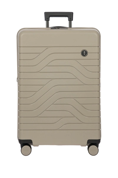 The 28" spinner ULISSE B/Y collection from Bric's. This stylish yet urban looking trolley is made out of Polypropylene. This is a very strong, durable and light weight material that guarantees resistance to shocks and scratches. A functional spinner perfect for every trip. . Telescoping handle. Handle: comfortable ergonomic and functional 3 stage telescopic handle selected via a press-stud button. Lock: A flushed built-in TSA approved lock required while travelling in the USA; it allows American airport security to inspect the luggage without damaging the bag using a universal key used by the TSA security only. Wheels: four double swivelling wheels with a matching color cap that give a wider radius allowing an easy 360° rotation in all directions. Exterior features made in Polypropylene, ultra durable, lightweight and flexible. Interior features two compartment interior fully lined with a printed lining to copy the outside design of the bag. One side features a full zipper section and mesh pocket, the other a stretchable strap to hold all your belongins in place; a smaller pocket for smaller accessories and a shoe/laundry bag. Details: An expandable zipper (up to 2 inches), hidden name tag, top carry handle with custom cap with B/Y logo in matching color. Approx. 28" H x 19" W x 11-12.5" D. Imported This item cannot be shipped to Canada. Dry cloth, small quantity of neutral wax or water Polypropylene, polyester