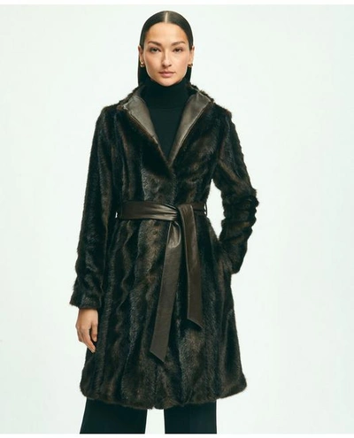 BROOKS BROTHERS Faux Fur Belted Mock Neck Coat In Brown