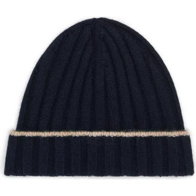 BRUNELLO CUCINELLI Cashmere Rib Knit Beanie In Navy Blue