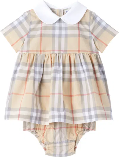 BURBERRY Baby Beige Check Cotton Poplin Dress In Neutral