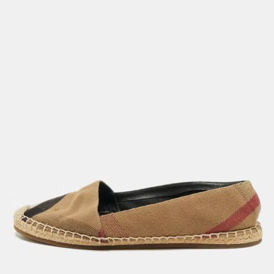 Pre-owned Brown/beige House Check Canvas Espadrille Flats Size 37