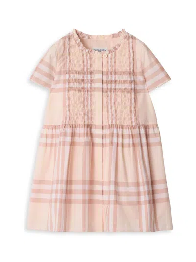 Crafted of cotton poplin, this smocked shirt dress is woven with the Burberry Check and finished with intricate picot edging. Round neck Short sleeves Button-front closure 100% cotton Machine wash Imported Please note: This item runs small. ABOUT THE BRAND Founded in 1856 by 21-year-old Thomas Burberry, the brand set out with a mission to stylishly protect against British weather-and Burberry's iconic trench coat was born. In the 1920s, its renowned check pattern was introduced as the coat's lining. Today, under Creative Director Daniel Lee, the heritage brand continues to evolve and create timelessly classic men's, women's and kids' pieces, along with beauty. Children's Wear - Burberry Kids > Burberry > Saks Fifth Avenue. Burberry. Color: Shell Check. Size: 6 Months.