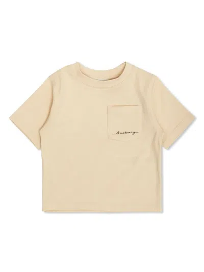 BURBERRY Babies' Logo-print Cotton T-shirt In Nude