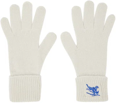 BURBERRY Off-white Logo-embroidered Gloves In Plaster