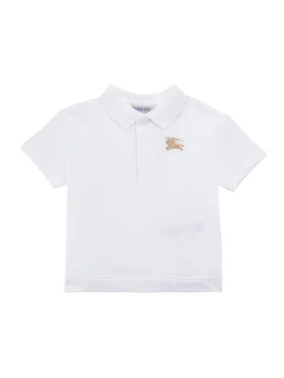 Crafted of cotton, this polo shirt by Burberry is accented with the signature Equestrian Knight Design embroidered on the chest. Spread collar Short sleeves Button-front placket 100% cotton Machine wash Imported Please note: This item runs small. ABOUT THE BRAND Founded in 1856 by 21-year-old Thomas Burberry, the brand set out with a mission to stylishly protect against British weather-and Burberry's iconic trench coat was born. In the 1920s, its renowned check pattern was introduced as the coat's lining. Today, under Creative Director Daniel Lee, the heritage brand continues to evolve and create timelessly classic men's, women's and kids' pieces, along with beauty. Children's Wear - Burberry Kids > Burberry > Saks Fifth Avenue. Burberry. Color: White. Size: 6 Months.