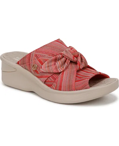 BZEES PREMIUM Women's Smile Washable Slide Wedge Sandals In Coral Weekend Stripe Fabric