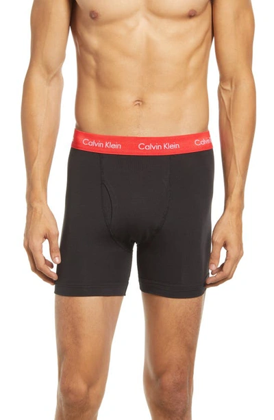 CALVIN KLEIN 3-pack Moisture Wicking Stretch Cotton Boxer Briefs In Black Multi