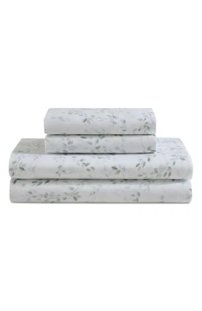 CALVIN KLEIN Airy Botanical 300 Thread Count Sateen Sheet Set In Pale Green
