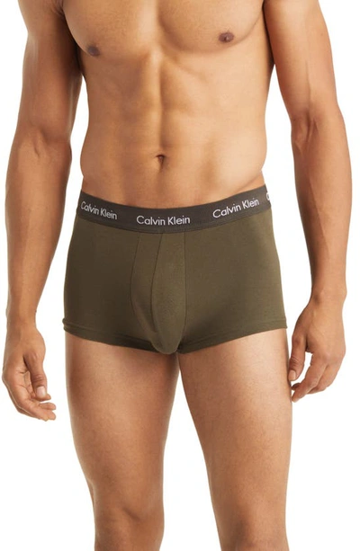 CALVIN KLEIN Cotton Stretch Moisture Wicking Low Rise Trunks, Pack Of 3 In Olive/gentle/red Carpet