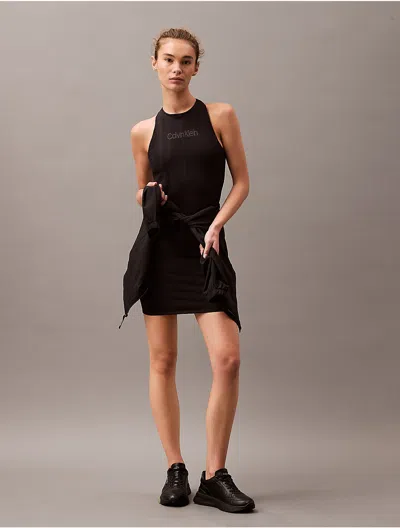 Designed with a contouring slim fit, this dress has a seamless ribbed construction that stretches for free movement. Made in a mini length. Detailed with a Calvin Klein logo at the upper chest. Material: 70% Polyamide, 26% Polyester, 4% Elastane.