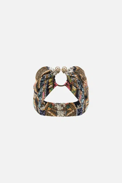 The Florence Field Day Ring Headband explores the rich palette of pastel highlights set along side opulent sculptural flourishes and sweeping archways. This exquisite silk headband, adorned with meticulously embellished signature CAMILLA crystals is designed for ultimate elegance. A luxurious accessory that features an elasticated backing to ensure a perfect fit. The gold hardware detailing adds a touch of sophistication, creating a soft ruching effect that accentuates the generous width of the headband. Lovingly crafted, designed in Australia. Explore more from the Amore Mio collection.