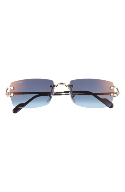 CARTIER 56mm Rimless Rectangular Sunglasses In Gold/blue