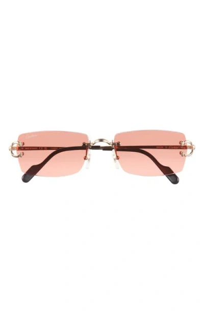 CARTIER 56mm Rimless Rectangular Sunglasses In Pink