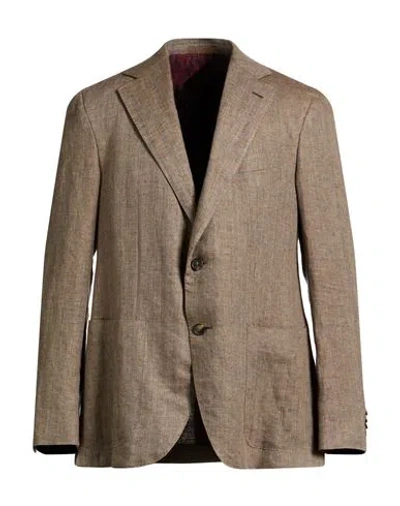 CARUSO Man Blazer Dark Brown Size 42 Linen
