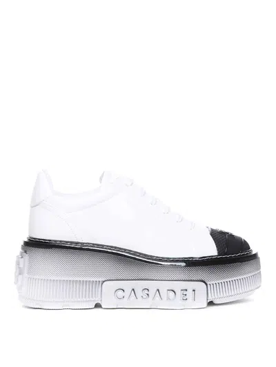 CASADEI Low Top Leather Platform Sneakers In White