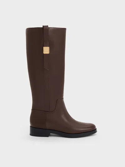 CHARLES & KEITH - Yvette Metallic-accent Knee-high Boots In Dark Brown