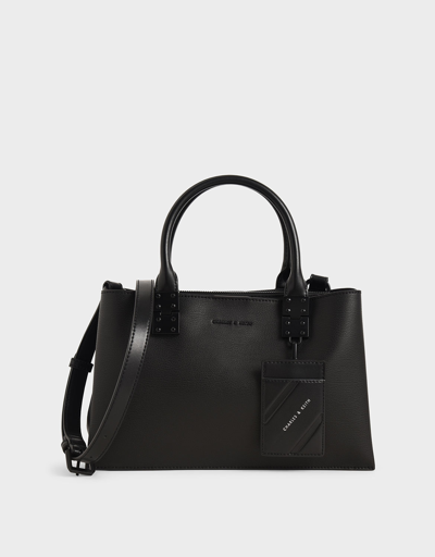 CHARLES & KEITH Double Top Handle Structured Bag In Ultra-matte Black