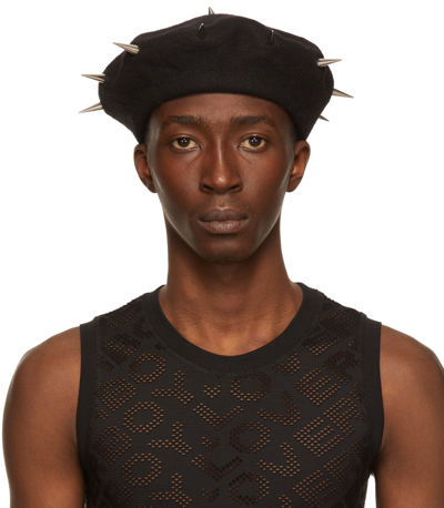CHARLES JEFFREY LOVERBOY Spiked Stud Detail Beret In Black