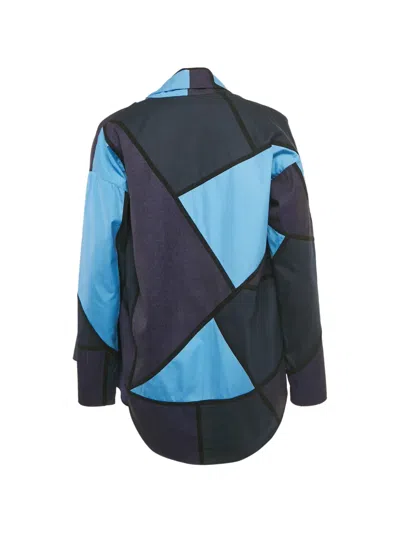 blue patchwork design open front long sleeves Condition: EXCELLENT. This previously owned item is in near-perfect condition with no signs of damage or use.