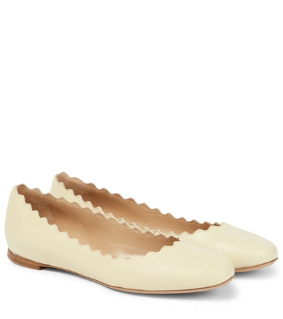 CHLOÉ Lauren Scalloped-edge Leather Ballet Flats In Cream