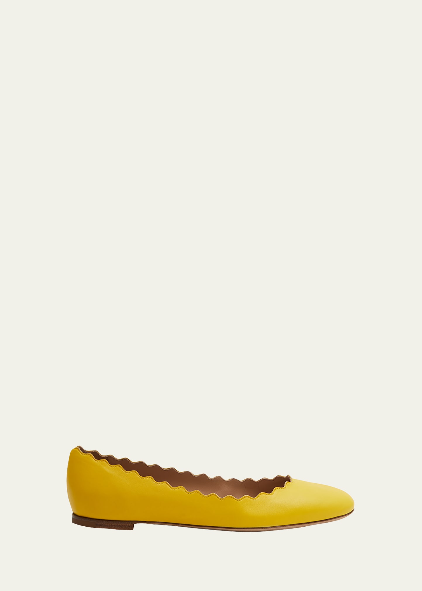 CHLOÉ Lauren Scalloped Leather Ballet Flats In Citrus Yellow