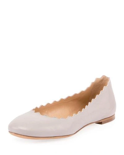 CHLOÉ Lauren Scalloped Leather Ballet Flats In Dove Grey