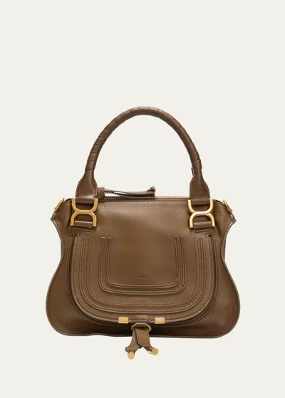 CHLOÉ Marcie Small Double Carry Satchel Bag In Grained Leather In Dark Khaki