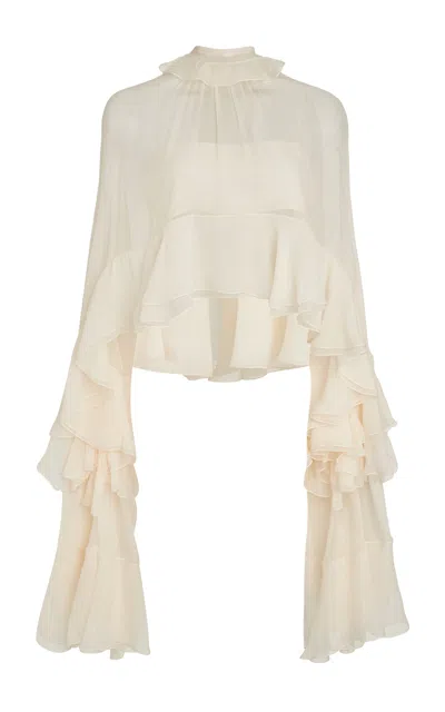 CHLOÉ Ruffled Organic Silk Crop Top In White