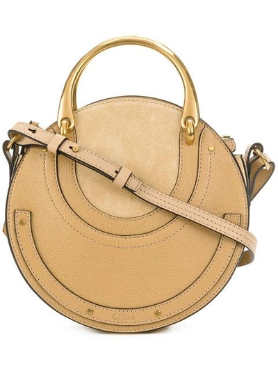 Chloé continues to create timeless handbags with a bohemian twist. Expect to see subtle studding, fringes and warm toned hardware. Pearl beige leather Small Pixie shoulder bag featuring a top zip fastening, a detachable and adjustable shoulder strap, a gold-tone stud detailing, metal top handles and a round silhouette. Leather 100%