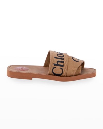 CHLOÉ Woody Flat Logo Ribbon Slide Sandals In Grove Brown