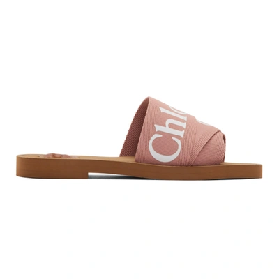 CHLOÉ Woody Logo-print Canvas Slides In Pink