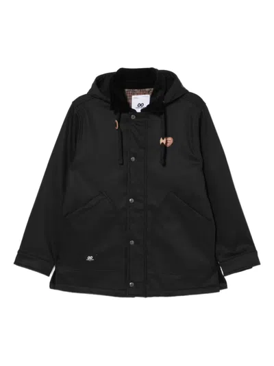 black front button fastening two side patch pockets buttoned-cuff sleeves