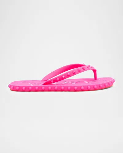 CHRISTIAN LOUBOUTIN Loubi Donna Spike Red Sole Flip Flops In Pink